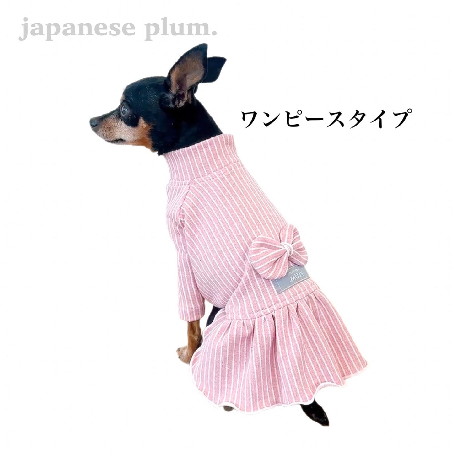 タテジマなワンピース(リボン無し)(胴回り48㎝まで着丈33㎝まで)