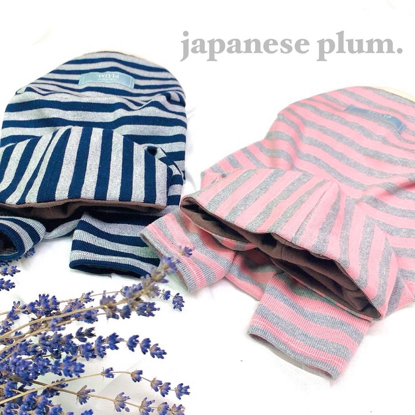 紺とピンクのパーカー。