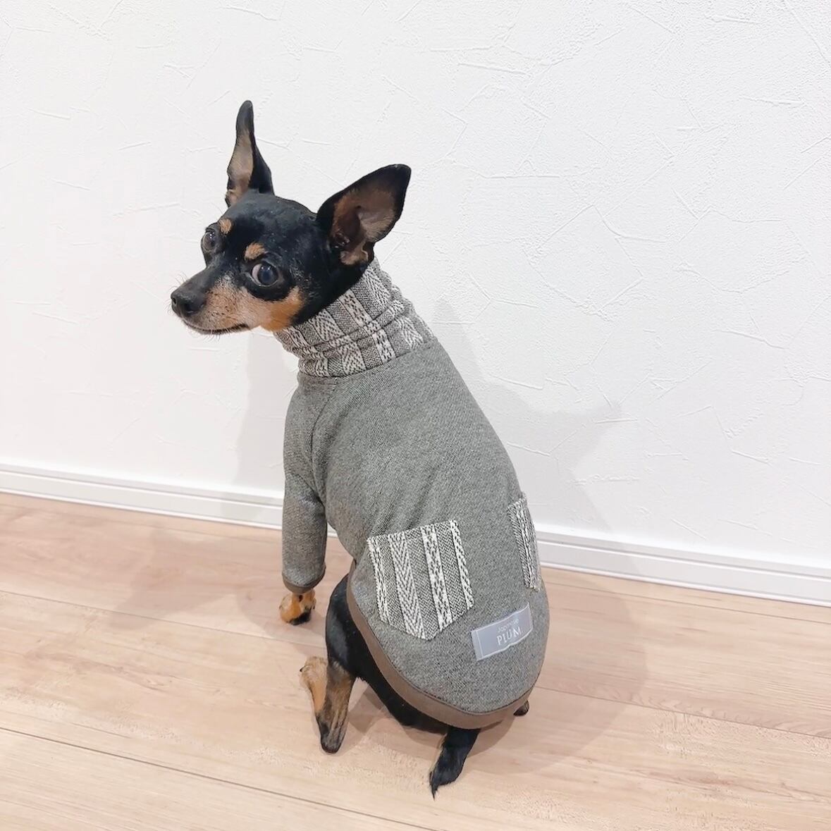 ネック、ポケット部分は柄のジャガードニットでポイントに。